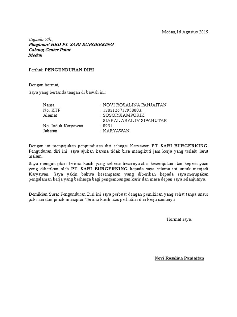Contoh Surat Resign Pdf